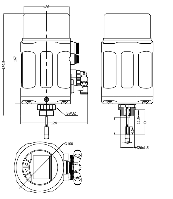 倾向于安装在执行器顶端,通过螺纹和执行器连接